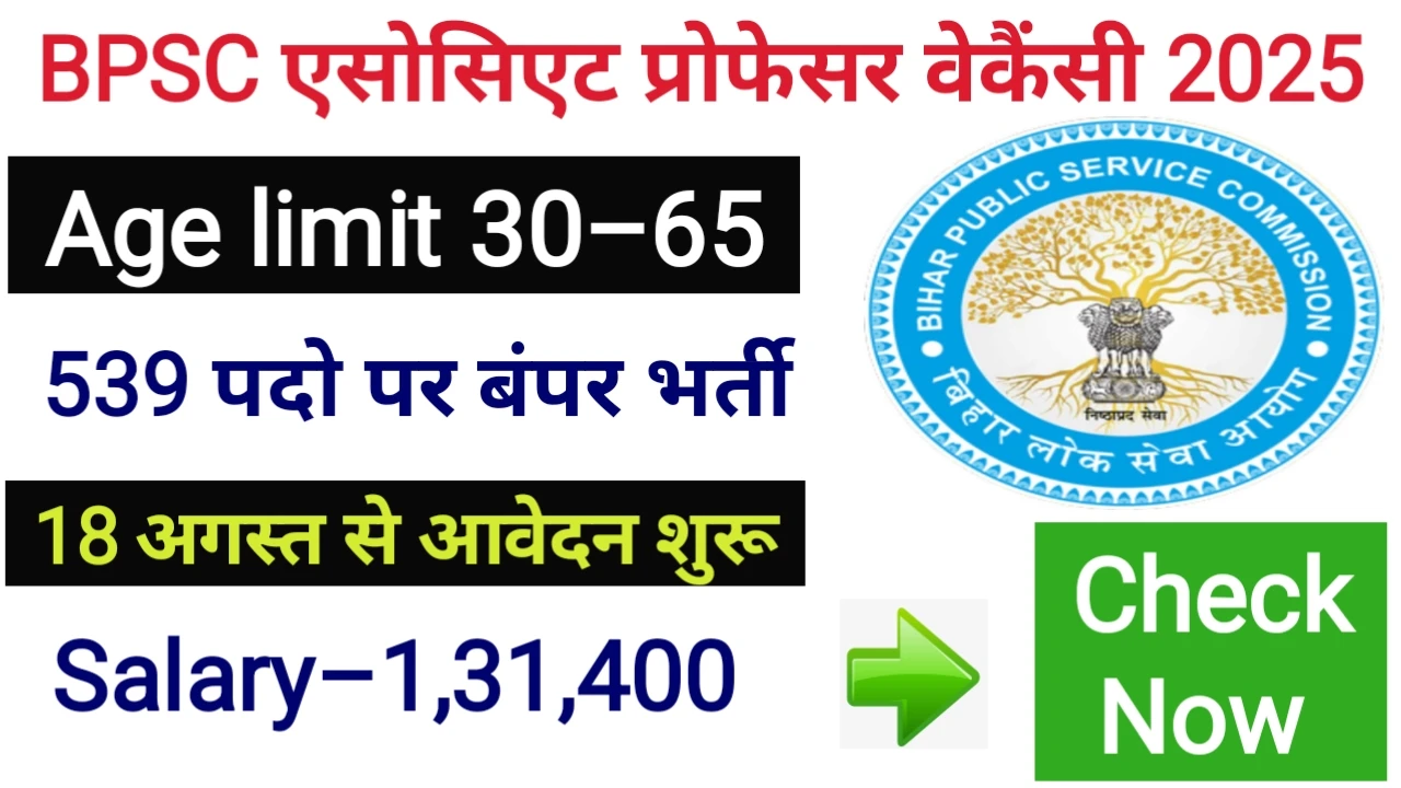 BPSC Associate Professor Recruitment 2025: बिहार में 539 एसोसिएट प्रोफेसर के पदों के लिए आवेदन शुरू! अभी पूरी जानकारी देखे।