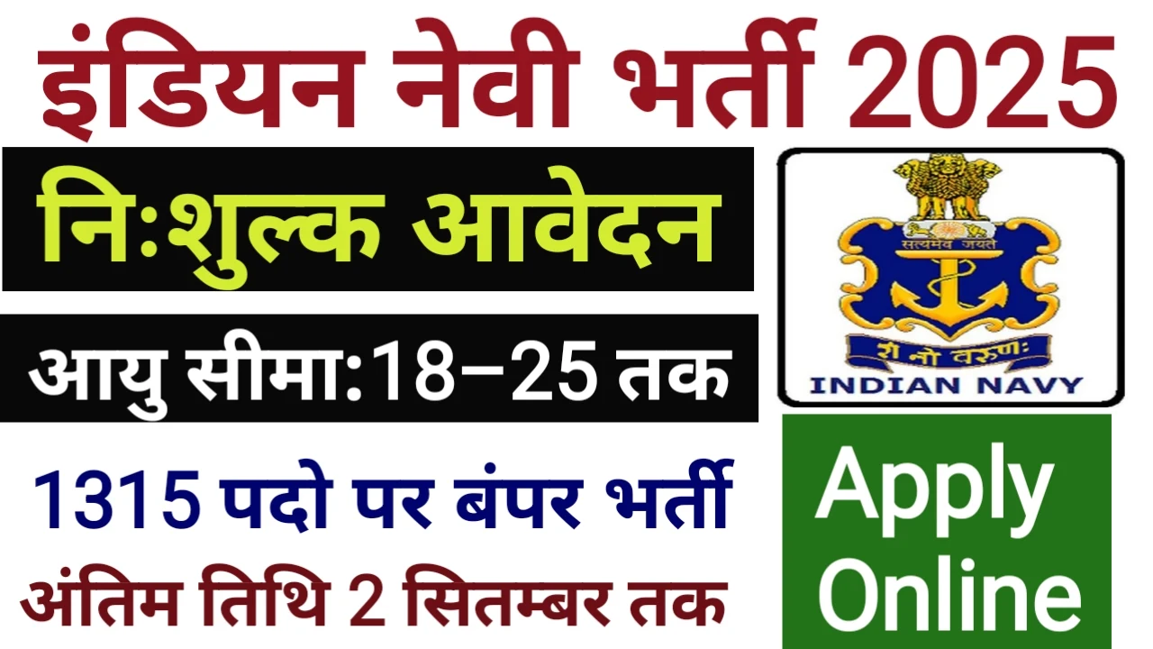 Indian Navy Vacancy 2025: 10वीं पास के लिए 1315 पदों पर भर्ती का सुनहरा मौका! अभी पूरी जानकारी चेक करे ।