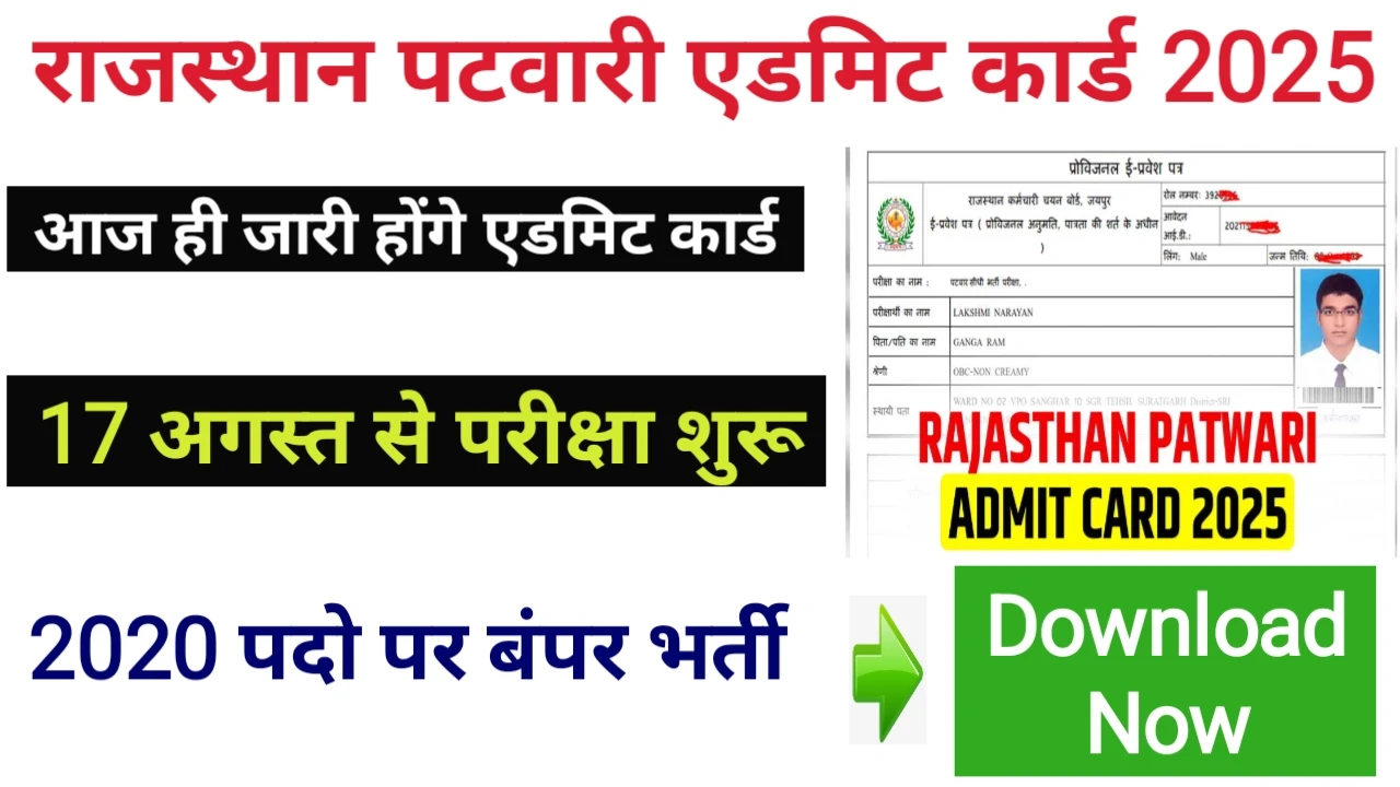 Rajasthan Patwari Admit Card 2025: अपनी परीक्षा की तारीख़,हॉल टिकट नंबर व परीक्षा का सेंटर जल्द ही चेक करे।